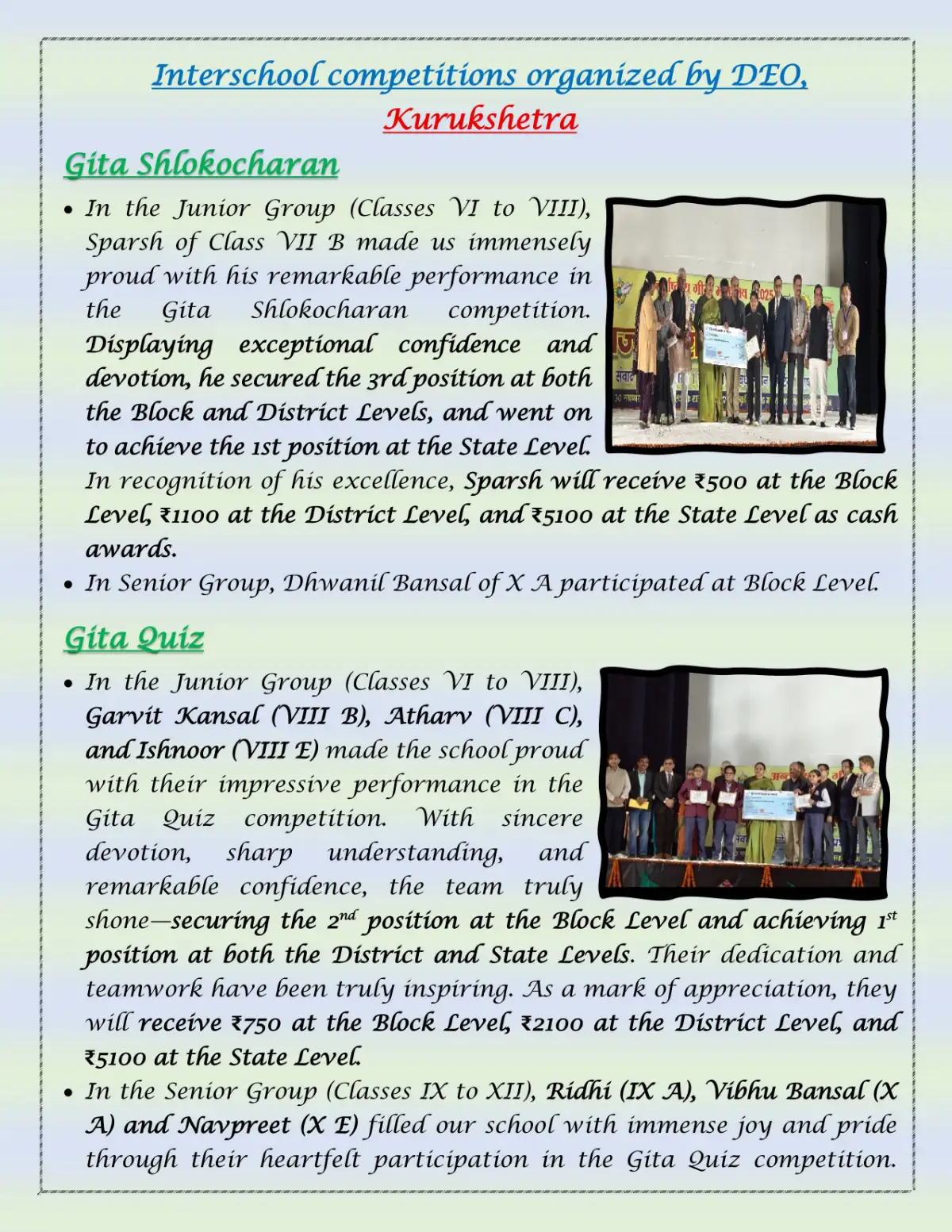SCHOLARSHIP CRITERIA FOR CLASSES XI & XII